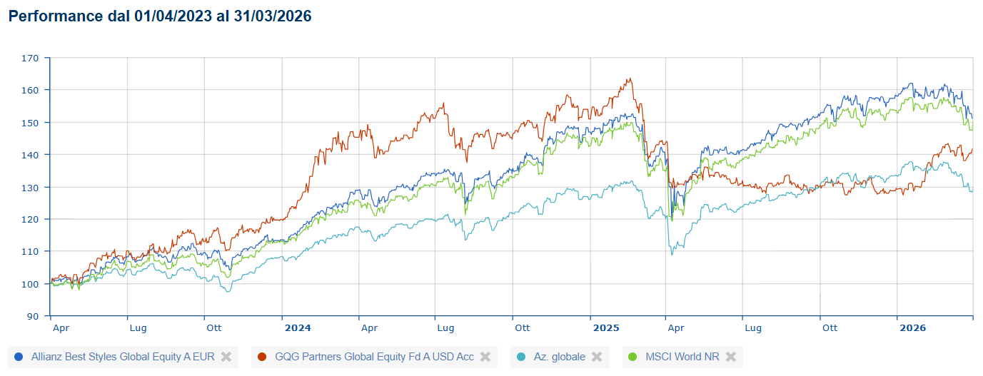 * La metodologia utilizzata per l'elaborazione dei dati è interna a Quantalys. I calcoli sono aggiornati al 31/03/2026. I calcoli sono effettuati da Quantalys e sono basati sui dati inviati giornalmente dalle società di gestione. Eventuali errori o omissioni sono di esclusiva responsabilità di Quantalys. Nonostante la massima cura prestata nella raccolta, nella verifica e nell’elaborazione dei dati provenienti da fonti ritenute affidabili, Quantalys non garantisce che i dati ricevuti siano accurati. Tutti i calcoli sono effettuati in euro.