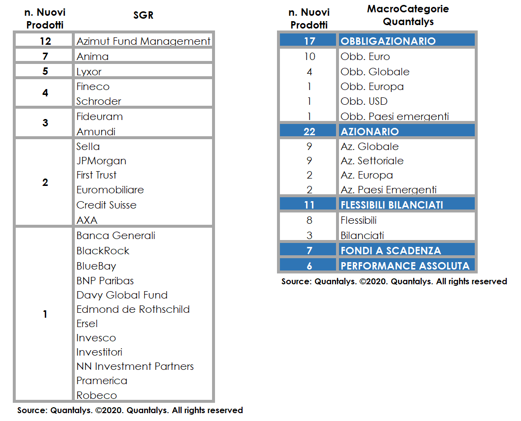 In quali comparti e da quali SGR sono stati lanciati i nuovi prodotti dal 01.01.2020 al 31.05.2020 ?