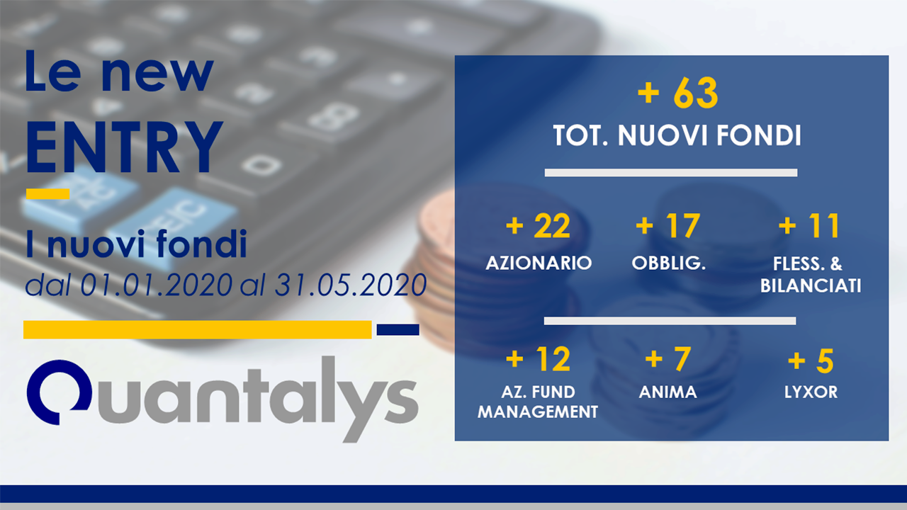 Dal 1° gennaio al 31 maggio 2020 sono stati lanciati 63 nuovi prodotti con un ritmo via via decrescente nei diversi mesi. Se a gennaio il numero di nuovi fondi è stato pari 18 e a febbraio a 20, nel mese di marzo abbiamo registrato una flessione con il numero di nuovi prodotti sceso a 13 e destinato ad essere ancora più basso nei mesi successivi con 8 nuovi fondi ad aprile e solo 4 nel mese di maggio.