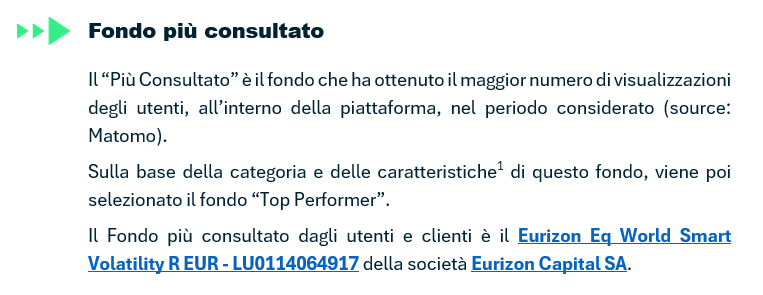 Scopri le schede Quantalys del fondo “Più Consultato” e del fondo “Top Performer”, appartenente alla stessa categoria Quantalys di settembre 2025.