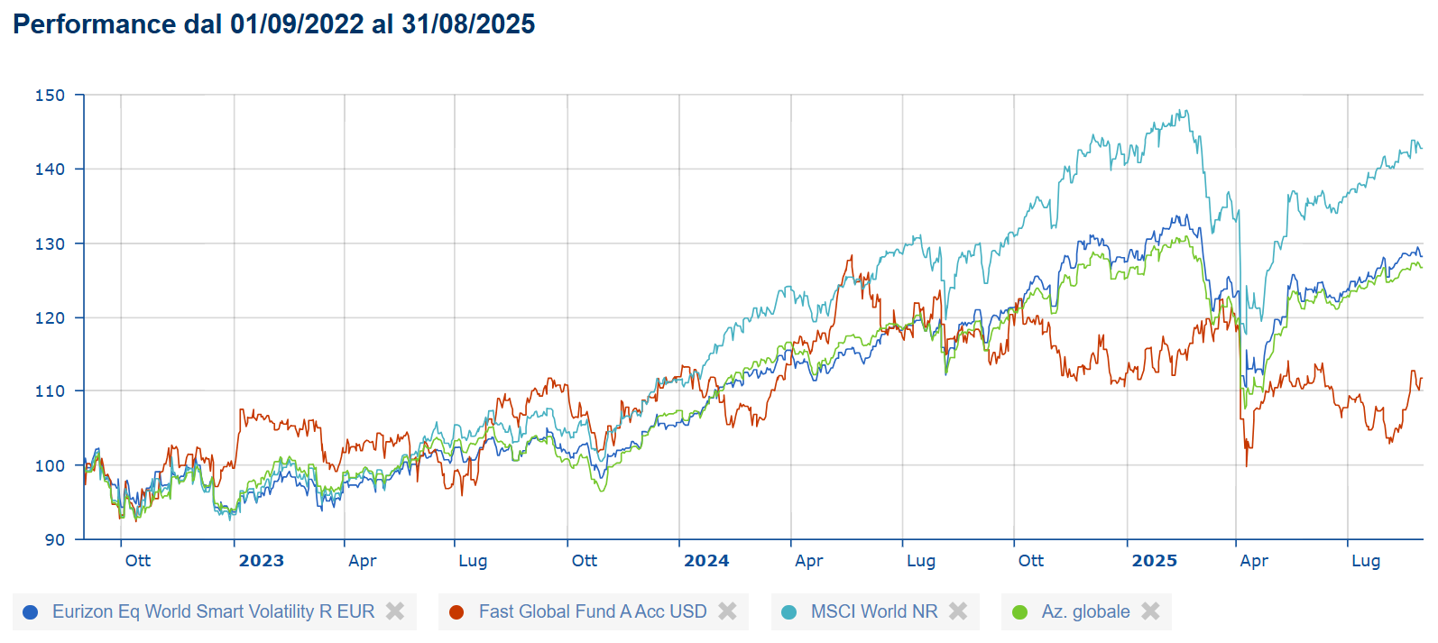 * La metodologia utilizzata per l'elaborazione dei dati è interna a Quantalys. I calcoli sono aggiornati al 31/08/2025. I calcoli sono effettuati da Quantalys e sono basati sui dati inviati giornalmente dalle società di gestione. Eventuali errori o omissioni sono di esclusiva responsabilità di Quantalys. Nonostante la massima cura prestata nella raccolta, nella verifica e nell’elaborazione dei dati provenienti da fonti ritenute affidabili, Quantalys non garantisce che i dati ricevuti siano accurati. Tutti i calcoli sono effettuati in euro.